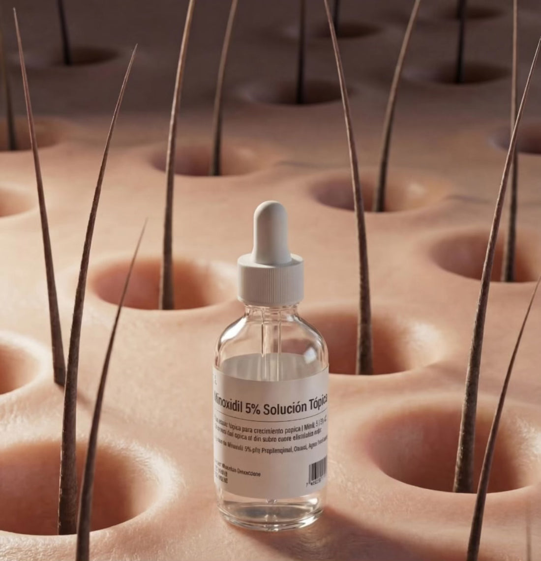 Nuestro sistema incluye minoxidil al 5% (concentración profesional) + dermaroller para maximizar la absorción.